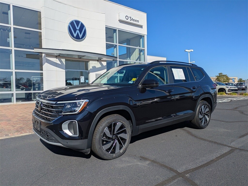 2024 Volkswagen Atlas 2.0T SE w/Technology ONE OWNER, Volkswagen Certified Pre-Owned Certified, 3.60 Axle Ratio, 3rd row seats: split-bench, 4-Wheel Disc Brakes, 6 Speakers, ABS brakes, Air Conditioning, AM/FM radio: SiriusXM with 360L, Auto-dimming Rear-View mirror, Automatic temperature control, Brake assist, Bumpers: body-color, Compass, Delay-off headlights, Driver door bin, Driver vanity mirror, Dual front impact airbags, Dual front side impact airbags, Electronic Stability Control, Emergency communication system: VW Car-Net Safe & Secure 5-year, Exterior Parking Camera Rear, Four wheel independent suspension, Front anti-roll bar, Front Bucket Seats, Front Center Armrest, Front dual zone A/C, Front fog lights, Front reading lights, Fully automatic headlights, Heated door mirrors, Heated front seats, Heated steering wheel, Heated/Actively Ventilated Front Bucket Seats, Illuminated entry, Low tire pressure warning, Occupant sensing airbag, Outside temperature display, Overhead airbag, Overhead console, Panic alarm, Passenger door bin, Passenger vanity mirror, Perforated V-Tex Leatherette Seating Surfaces, Power door mirrors, Power driver seat, Power Liftgate, Power steering, Power windows, Radio data system, Radio: MIB3 Composition Media, Rain sensing wipers, Rear air conditioning, Rear anti-roll bar, Rear reading lights, Rear seat center armrest, Rear window defroster, Rear window wiper, Remote keyless entry, Security system, Speed control, Speed-sensing steering, Split folding rear seat, Spoiler, Standard Suspension, Steering wheel mounted audio controls, Tachometer, Telescoping steering wheel, Tilt steering wheel, Traction control, Trip computer, Turn signal indicator mirrors, Variably intermittent wipers, Ventilated front seats, Wheels: 20" 2-Tone Machined Alloy.