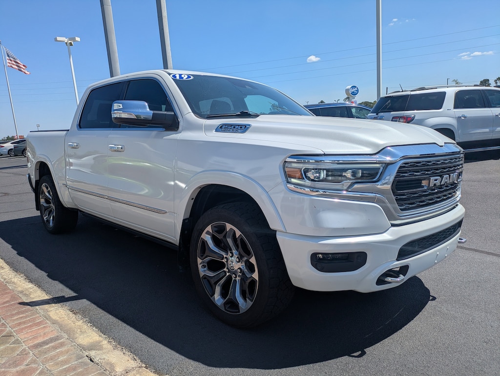 Ivory White Tri-Coat Pearlcoat 2019 Ram 1500 Limited 4WD 8-Speed Automatic HEMI 5.7L V8 Multi Displacement VVT 1-Yr SiriusXM Guardian Trial, 10 Speakers, 12" Touchscreen Display, 4 Adjustable Cargo Tie-Down Hooks, 4-Wheel Disc Brakes, 48V Belt Starter Generator, ABS brakes, Adaptive Cruise Control w/Stop & Go, Adjustable pedals, Advanced Brake Assist, Air Conditioning, Alloy wheels, AM/FM radio: SiriusXM with 360L, Apple CarPlay, Apple CarPlay/Android Auto, Audio memory, Auto High-beam Headlights, Auto-dimming door mirrors, Auto-dimming Rear-View mirror, Auto-leveling suspension, Automatic temperature control, Bed Utility Group, Body Color Bumper Group, Body Color Front Bumper, Body Color Rear Bumper w/Step Pads, Bodyside moldings, Brake assist, Bumpers: chrome, Compass, Delay-off headlights, Disassociated Touchscreen Display, Dome Dual LED Reading Lamp, Driver door bin, Driver vanity mirror, Dual front impact airbags, Dual front side impact airbags, Dual-Pane Panoramic Sunroof, Electronic Stability Control, Emergency communication system: SiriusXM Guardian, Front anti-roll bar, Front Bucket Seats, Front Center Armrest w/Storage, Front dual zone A/C, Front fog lights, Front reading lights, Front wheel independent suspension, Full Speed Forward Collision Warning Plus, Fully automatic headlights, Garage door transmitter, Genuine wood console insert, Genuine wood dashboard insert, Genuine wood door panel insert, Google Android Auto, GPS Antenna Input, GPS Navigation, harman/kardon 19 Speaker Premium Sound, HD Radio, Heated door mirrors, Heated front seats, Heated rear seats, Heated steering wheel, Illuminated entry, Integrated Center Stack Radio, Kentucky Derby Edition (DISC), Kentucky Derby Edition Decal, Lane Keep Assist, Leather steering wheel, LED Dome/Reading Lamp, Limited Level 1 Equipment Group, Low tire pressure warning, Memory seat, Navigation System, No Satellite Coverage w/HI/AK/PR/VI/GU, Occupant sensing airbag, Outside temperature display, Overhead airbag, Overhead console, Panic alarm, Parallel & Perp Park Assist w/Stop, ParkView Rear Back-Up Camera, Passenger door bin, Passenger vanity mirror, Pedal memory, Pick-Up Box Lighting, Power door mirrors, Power driver seat, Power passenger seat, Power steering, Power windows, Premium Leather Trimmed Bucket Seats, Quick Order Package 27M Limited, Radio data system, Radio: Uconnect 12 w/Navigation, Rain sensing wipers, Rear anti-roll bar, Rear seat center armrest, Rear step bumper, Rear window defroster, Remote CD player, Remote keyless entry, Security system, SiriusXM Satellite Radio, SiriusXM Traffic Plus, SiriusXM Travel Link, SiriusXM w/360L, Speed control, Split folding rear seat, Steering wheel mounted audio controls, Tachometer, Telescoping steering wheel, Tilt steering wheel, Traction control, Trailer Brake Control, Tri-Fold Tonneau Cover, Trip computer, Turn signal indicator mirrors, USB Host Flip, Variably intermittent wipers, Ventilated front seats, Ventilated Rear Seats, Voltmeter, Wheels: 22" x 9" Polish/Painted w/Inserts.