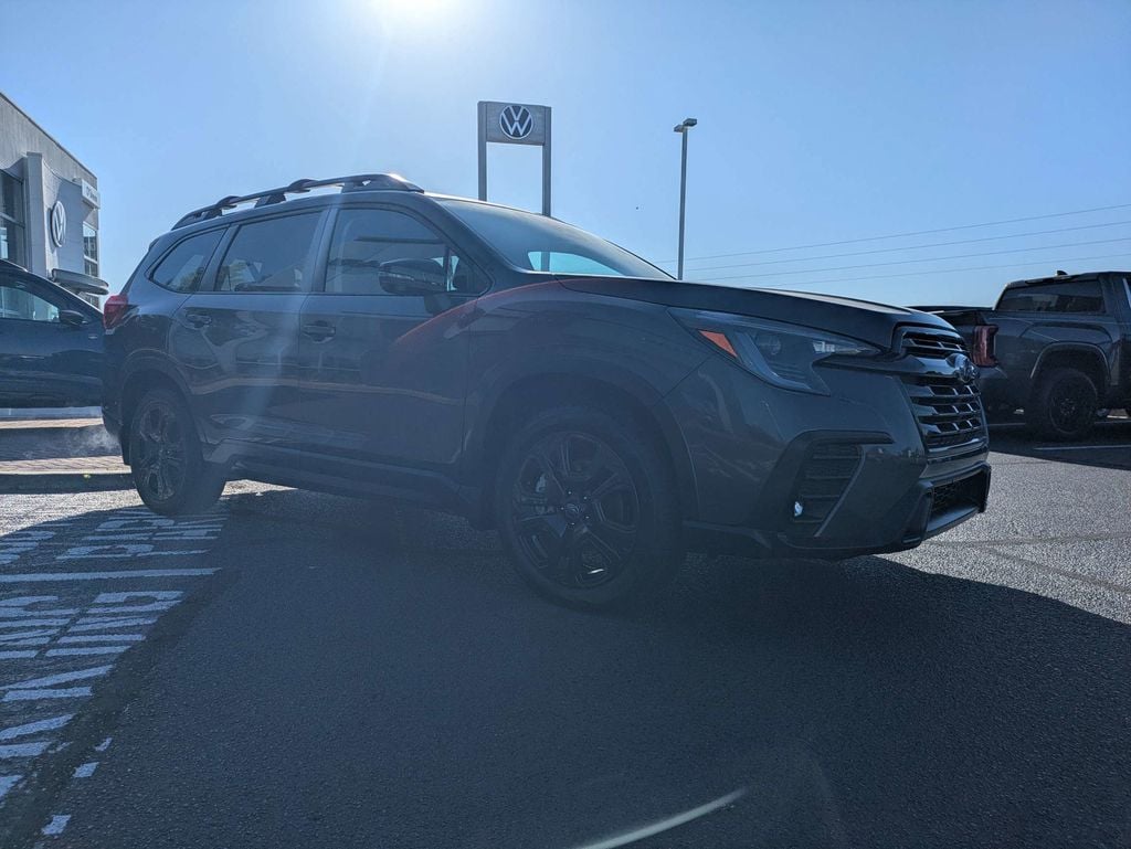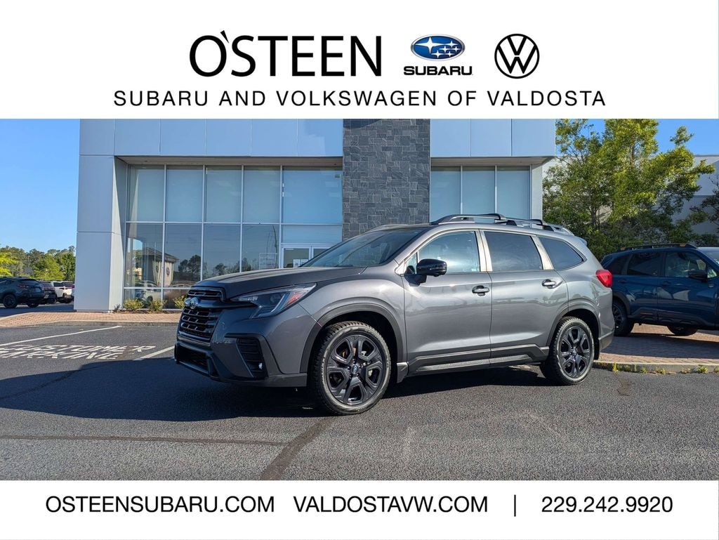 2023 Subaru Ascent Onyx Edition CERTIFIED PRE-OWNED, Ascent Onyx Edition, Subaru Certified Pre-Owned Certified, AWD, Magnetite Gray Metallic, Slate Black w/Spill Resistant Coated Cloth Upholstery, 14 Speakers, 2nd Row Captain's Chairs Rear Seatback Protector, 3rd row seats: bench, 4-Wheel Disc Brakes, ABS brakes, Air Conditioning, Alloy wheels, AM/FM radio: SiriusXM, Auto High-beam Headlights, Auto-Dimming Exterior Mirror w/Approach Light, Auto-dimming Rear-View mirror, Automatic temperature control, Axle Ratio: 4.44, Brake assist, Bumpers: body-color, Cargo Tray, Compass, Delay-off headlights, Driver door bin, Driver vanity mirror, Dual front impact airbags, Dual front side impact airbags, Electronic Stability Control, Emergency communication system: STARLINK Safety and Security (Subscription Required), Four wheel independent suspension, Front anti-roll bar, Front Bucket Seats, Front Center Armrest, Front dual zone A/C, Front fog lights, Front reading lights, Fully automatic headlights, Garage door transmitter: HomeLink, harman/kardon® Speakers, Heated door mirrors, Heated Front Bucket Seats, Heated front seats, Heated rear seats, Heated steering wheel, HVAC memory, Illuminated entry, Knee airbag, Leather Shift Knob, Leather steering wheel, Low tire pressure warning, Memory seat, Navigation System, Occupant sensing airbag, Outside temperature display, Overhead airbag, Overhead console, Panic alarm, Passenger door bin, Passenger vanity mirror, Power door mirrors, Power driver seat, Power Liftgate, Power moonroof, Power passenger seat, Power steering, Power windows, Radio data system, Radio: Subaru STARLINK 11.6" Multimedia Nav System, Rear air conditioning, Rear anti-roll bar, Rear reading lights, Rear window defroster, Rear window wiper, Reclining 3rd row seat, Remote keyless entry, Security system, Speed control, Speed-sensing steering, Splash Guards, Split folding rear seat, Spoiler, Standard Model, STARLINK/Apple CarPlay/Android Auto, StarTex Upholstery, Steering wheel mounted audio controls, Tachometer, Telescoping steering wheel, Tilt steering wheel, Traction control, Trip computer, Turn signal indicator mirrors, Variably intermittent wipers, Wheels: 20" x 7.5 J Aluminum Alloy w/Black Finish, Wireless Charger, Ascent Onyx Edition, AWD, Magnetite Gray Metallic, Slate Black w/Spill Resistant Coated Cloth Upholstery.