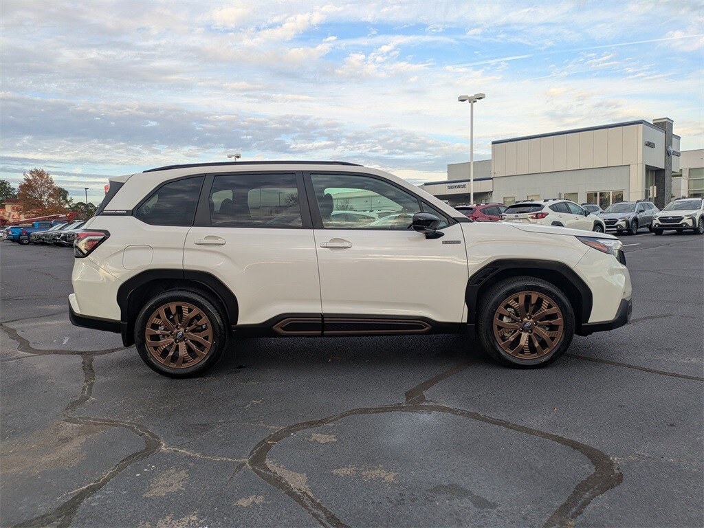 2025 Subaru Forester Hybrid Sport CERTIFIED PRE-OWNED, CLEAN CARFAX, NO ACCIDENTS, ONE OWNER, Forester Hybrid Sport, Crystal White Pearl, Gray Premium Synthetic, 11 Speakers, Air Conditioning, All-Weather Floor Liners, AM/FM radio: SiriusXM with 360L, Anti-whiplash front head restraints, Auto High-beam Headlights, Auto-Dimming Exterior Mirror with Approach Light, Auto-Dimming Mirror with Compass and HomeLink, Automatic temperature control, Brake assist, Cargo Tray, Compass, Driver door bin, Driver vanity mirror, Dual front impact airbags, Dual front side impact airbags, Electronic Stability Control, Emergency communication system: MySubaru Safety (3-year free trial), Front anti-roll bar, Front Bucket Seats, Front Center Armrest, Front dual zone A/C, Front fog lights, Front reading lights, Fully automatic headlights, harman/kardon® Speakers, Heated door mirrors, Heated Front Bucket Seats, Heated front seats, Illuminated entry, Knee airbag, LED Upgrade, Low tire pressure warning, Navigation system: TomTom Navigation w/what3words, Occupant sensing airbag, Outside temperature display, Overhead airbag, Overhead console, Passenger door bin, Passenger vanity mirror, Power driver seat, Power Liftgate, Power moonroof: Panoramic, Power steering, Power windows, Protection Package, Radio data system, Radio: Subaru 11.6" Multimedia Navigation System, Rear anti-roll bar, Rear Bumper Cover, Rear window defroster, Remote keyless entry, Speed control, Splash Guards, Split folding rear seat, Sport StarTex Upholstery, Standard Model, Steering wheel mounted audio controls, Wheels: 19" x 7.5 J Bronze Finish Aluminum-Alloy.