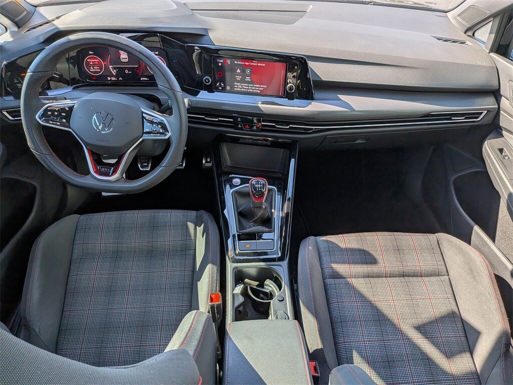 2024 Volkswagen Golf GTI S CERTIFIED PRE-OWNED, CLEAN CARFAX, NO ACCIDENTS, ONE OWNER, Golf GTI S, 2.0L TSI DOHC, 6-Speed Manual, Black, Titan Black/Scalepaper Plaid w/Cloth Seating Surfaces, 4-Wheel Disc Brakes, 7 Speakers, ABS brakes, Adaptive suspension, Air Conditioning, Alloy wheels, AM/FM radio, Auto-dimming Rear-View mirror, Automatic temperature control, Brake assist, Bumpers: body-color, Cloth Seating Surfaces, Compass, Delay-off headlights, Driver door bin, Driver vanity mirror, Dual front impact airbags, Dual front side impact airbags, Electronic Stability Control, Emergency communication system: VW Car-Net Safe & Secure 5-year, Exterior Parking Camera Rear, Forward collision: FCW w/Autonomous Emergency Braking mitigation, Four wheel independent suspension, Front anti-roll bar, Front Bucket Seats, Front Center Armrest, Front fog lights, Front reading lights, Fully automatic headlights, Heated door mirrors, Heated front seats, Heated Front Top Sport Seats, Heated steering wheel, Illuminated entry, Lane Departure Warning System, Leather Shift Knob, Leather steering wheel, Low tire pressure warning, Occupant sensing airbag, Outside temperature display, Overhead airbag, Overhead console, Panic alarm, Passenger door bin, Passenger vanity mirror, Power door mirrors, Power driver seat, Power passenger seat, Power steering, Power windows, Radio data system, Radio: MIB3 Composition Color w/8.25" Touchscreen, Rain sensing wipers, Rear anti-roll bar, Rear reading lights, Rear seat center armrest, Rear window defroster, Rear window wiper, Remote keyless entry, Security system, Speed control, Speed-sensing steering, Speed-Sensitive Wipers, Split folding rear seat, Spoiler, Sport steering wheel, Steering wheel mounted audio controls, Tachometer, Telescoping steering wheel, Tilt steering wheel, Traction control, Trip computer, Turn signal indicator mirrors, Variably intermittent wipers, Wheels: 19" Multi-Spoke Gloss Black Painted Alloy.